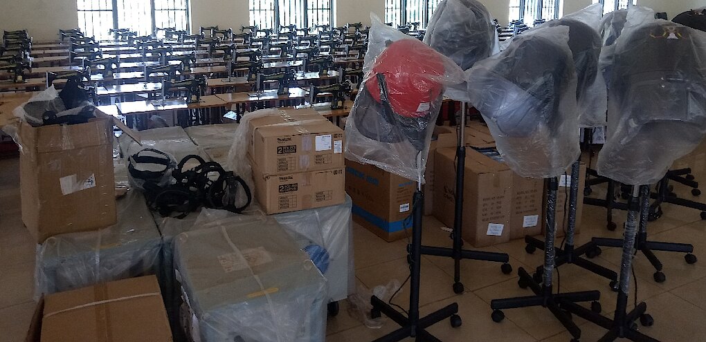 Ibikoresho byahawe uru Rubyiruko ni: Imashini zidoda 160, Ipasi z'Umuriro 160, Imikasi 160, Metero z'Abadozi 160, Ponseze 10, Imashini zisudira 10, Amadarubindi y'Abasuderi 10,Tongs TA 10, Imashini zogosha z'Abadamu 10, Seshe(Hair Dryers) 10, Inyundo 10,Iranda 10 n'Inkwero 10.